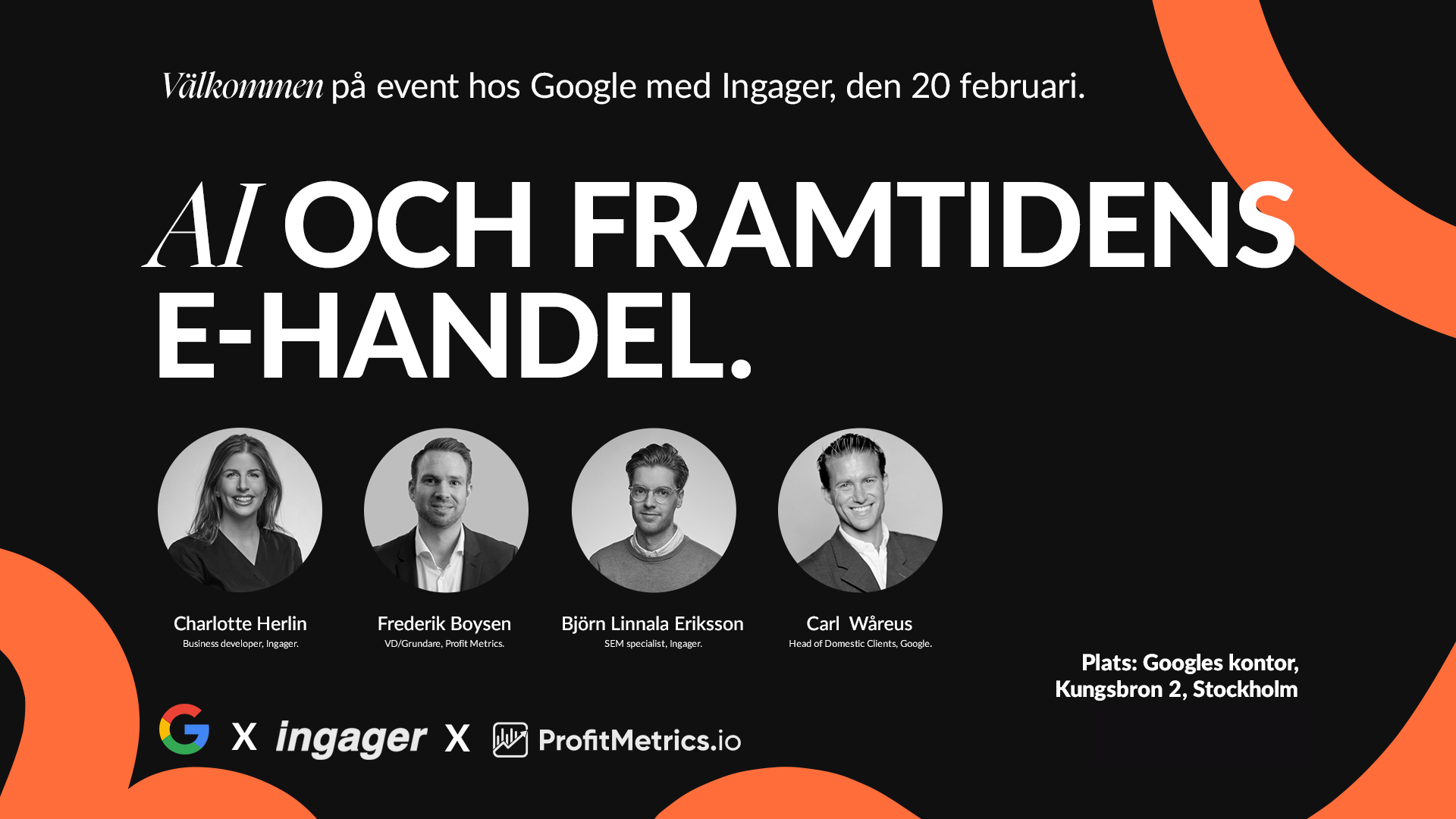 Välkommen till en morgon med fokus på framtidens e-handel och datadrivna beslut. Du kommer få konkreta insikter om hur Googles AI-utveckling påverkar din försäljning, hur du prioriterar rätt produkter i Google Ads och hur du kopplar marknadsföringen direkt till affärsnytta.